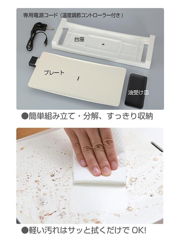 | セット内容 | 台座、プレート、油受け皿、専用電源コード(温度調節コントローラー付き)、取扱説明書兼保証書(保証期間:1年間) |