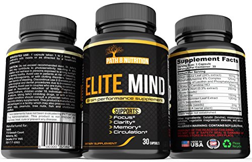 -. Feature : ALL NATURAL & SAFE - our brain support supplement is packed with all natural ingredients, and manufactured at a GMP certified and FDA registered facility - specially formulated by a physician, with absolutely no synthetic ingredients. / PREMIUM INGREDIENTS - all of the best mind boosting ingredients packed into one capsule - saving you money & saving the environment! / GREAT MEMORY, FOCUS, & CLARITY SUPPORT - our brain booster is an exceptional blend of all of the right ingredients to support, improve, and maintain brain health and overall mental performance - perfect for students, athletes, busy parents, and seniors / WITH GINKGO BILOBA & BACOPA MONNIERI - ginkgo biloba promotes healthy circulation oxygenating the brain, thus enhancing alertness & concentration - bacopa monnieri is a nootropic herb that enhances cognitive functioning & longevity / SATISFACTION GUARANTEED - Elite Mind is proud to manufacture only the highest quality, premium products and supplements for their new and loyal customers