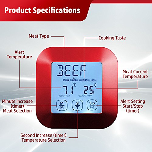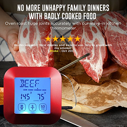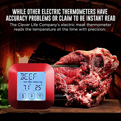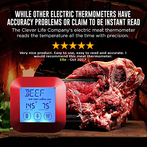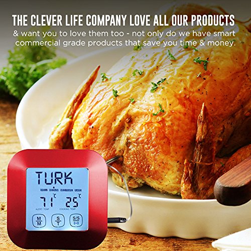 Product Description At The Clever Life Company we're all about the shortcuts to perfect cooking. Perfect Cooking - either choose the pre-programmed settings such as medium-rare for beef, well done for chicken or set your own temperature. There are a total of 18 pre-programmed settings to make sure your dinner is cooked to the right temperature first time. Use Indoor or Outdoor - whether your cooking up a storm in the kitchen, outside on the bbq and smoker, even if you're using the programmable setting to make candy, temper chocolate or make that perfect desert. The digital reading complete with an alarm when the perfect setting is reached makes cooking a breeze. Here's a link from BBC on the temperatures to temper chocolate exactly http://www.bbcgoodfood.com/howto/guide/how-temper-chocolate Simple to Use - simple settings to change from Temperature Gauge to Timer or from Fahrenheit to Celcius. A handy 42 inch cable with 7 inch probe, who says size doesn't matter! Handy Hints - when cooking large joints of meat that you want to rest for a long time, which is recommended by most chefs, our advice is to take the meat out a few degrees early as your joint will continue to cook out of the oven or bbq. 100% Money Back Guarantee - we're so confident you'll love our products we offer a 100% no questions money back guarantee. Just send us the product back we'll refund you. 0 |