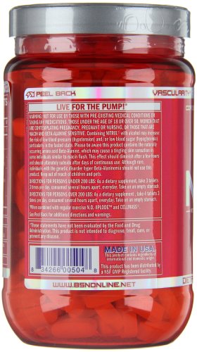 - Feature : BSN's time tested sustained release nitric oxide formula / Supports muscle fullness, vascularity and pumps / Contains 3 nitric oxide promoters / Contains beta-alanine for endurance and anti-fatigue support / Combine with N.O.-XPLODE 2.0 and CELLMASS for muscle growth support