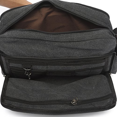 -. Brand : Mlife -. Color : Black -. Department : mens -. Feature : High density 16oz washed canvas with fabrin lining. Classic black hardware. Top Zipper Closure. / Comfortable fit A4 Size Magazine,14.1''(apple laptop) , iPad, iPad Mini or a tablet 12"x8.5"x2" and under / Three independent compartments: the front and back comparment all include the tool bag and zipper pocket to neat your belongings. The middle compartment with protection layer can protect your laptop or ipad more well. / Shoulder strap is wide and adjustable, fits most adult height; Shoulder drop: 22.4'' / Size: Approx. 12.99"L x 9.84"H x 4.72" W -. Model : MB-15 -. PackageQuantity : 1 -. ProductGroup : Apparel -. ProductTypeName : LAGE -. Size : Medium -. Title : Mlife Men Canvas Messenger Bag