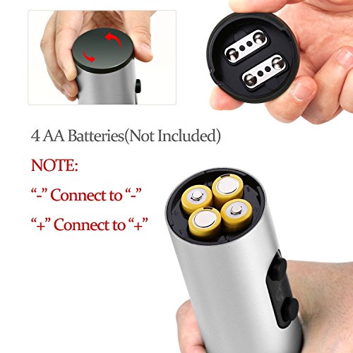 Electric Wine Opener, Cordless Battery Powered Wine Bottle Opener with Foil Cutter, Metallic Finish (Silver)