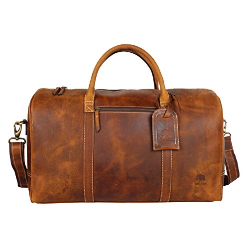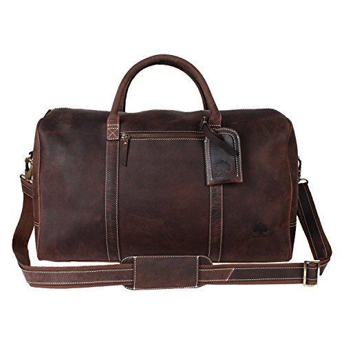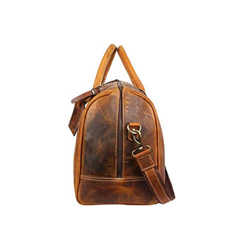 -. Feature : Premium Leather Duffel for Air Travel, Business Trips, Weekend Getaways etc. *****Limited Time Sale only***** / Handcrafted from 100% Genuine Buffalo Leather Travel Bag / Attractive Brush-Stroke Design for Enhanced Look / Spacious Compartment to Carry Clothes, iPad, Magazines, Books, Travel Items, etc. / Dimensions( in inches): 20(Length) , 11(Height), 7(Depth)