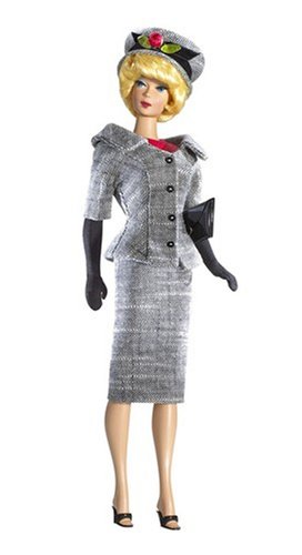 Black and white tweed suit is a tight skirt and a wide color jacket.