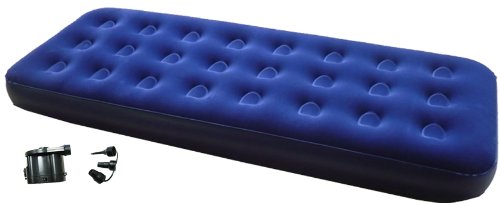 Top :Soft napping material Color: Blue Fast inflation and fast deflation Store in a small area perfect for home and camping use Air coil support adjustable firmness Size: 185 x 74 x 19cm (73"x 29"x7.5") Weight:4Lb DC Air pump operated by 4 "D" cell batteries (Battery sold separately) Reversible for both inflation and deflation Operated by 4 "D" cell batteries (Battery sold separately) come with 3 different nozzle adapters high volume air flow for speeding inflation and deflation Ideal for both indoor and out door use.Feature