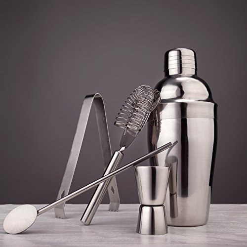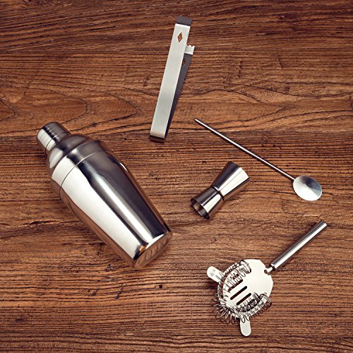 Homestia 실버 스테인레스강 칵테일 쉐이커 쉐이커 칵테일 바 세트 5점입