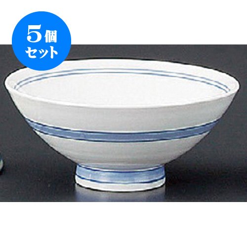 원본상품명: 5個セット 飯碗(磁器)?化 ブル?ライン中平 [118 x 52mm] ?化 和食器 料亭 旅館 ?食店 業務用