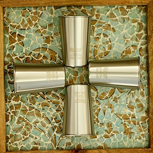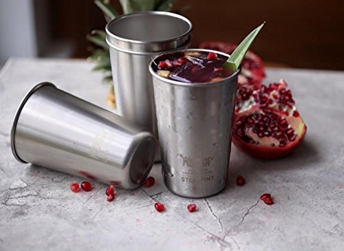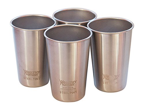 -. Title : Healthy Human Stainless Steel Tumbler Pint Mug Cups - 16oz. Ideal for Beer, Ice Tea, Wine & Water. 4-piece Bar Set.