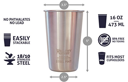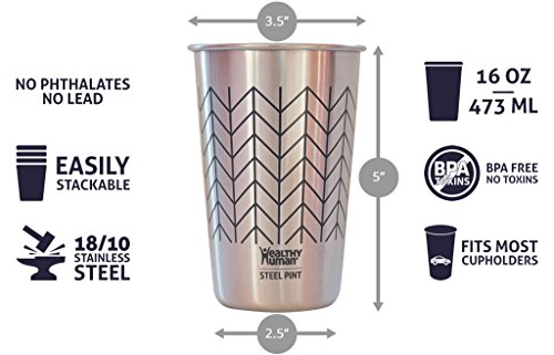 -. Feature : DURABLE | REUSABLE | STACKABLE: Waste Free these steel pints will become your go to cup. 4 Designs per set so everyone can have his or her own. 16oz liquid capacity each / WHAT'S INCLUDED: (4) Pint Cups, (1) Care & Use Guide, (1) Healthy Human Sticker, (1) Reusable & Recyclable Bag, (1) Recyclable Box ready for giving or receiving / BUILT FOR REAL LIFE: The perfect alternative to single use throwaway products like plastic and paper. Use at home, on picnics, festivals, at the office, parties, hiking, camping or simply wherever life takes you. IT IS TIME TO DITCH THE RED SOLO CUP! / 100% SATISFACTION OR YOUR MONEY BACK - Only by Healthy Human an Authentic Trademarked Product, Born in Beautiful Charleston SC