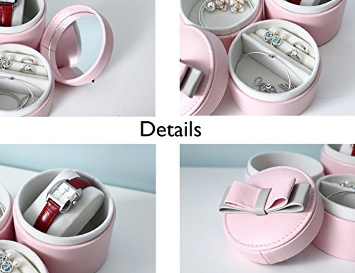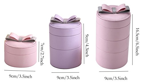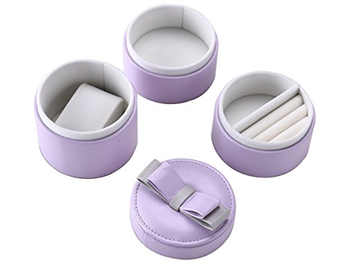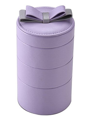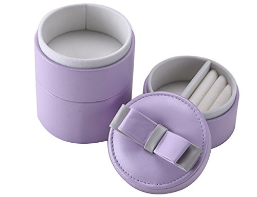iSuperb 3 Layer Cylinder Travel Jewelry Box Organizer Display Storage Case for Rings Earrings Necklace Bracelet Watch with Mirror (Purple)
