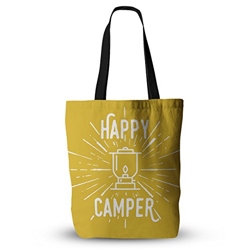 KESS InHouse Jackie Rose "Happy Camper" Yellow Typography Everything Tote Bag, 18" x 18", Multicolor