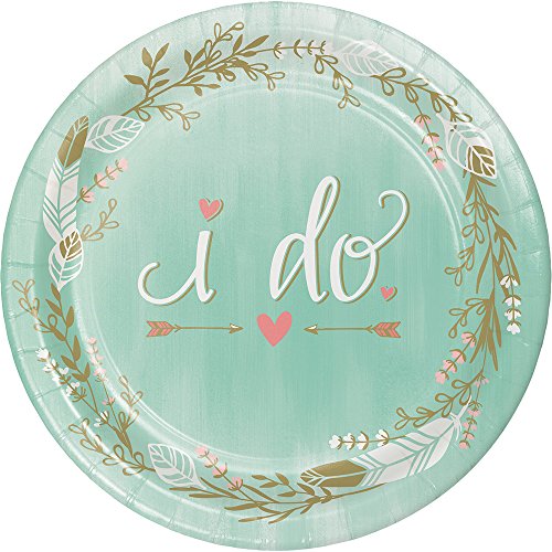 - Bold bohemian prints softened in minty green pastels and glistening metallic gold, reads: I Do