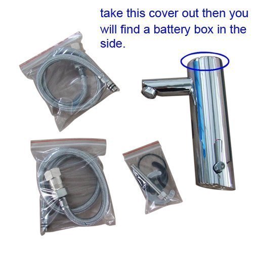 Advanced electronics, which eliminate reflectivity and false sensing All-brass chrome-plated construction Faucet turns on and off automatically with the wave of a hand Single Handle on the right side for temperature control Powered by battery (Not included) Specification: