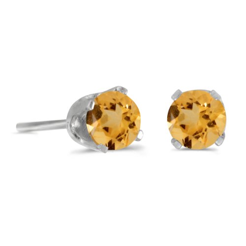 -. Title : 4 mm Round Citrine Stud Earrings in 14k White Gold