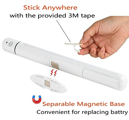 - ✔ Safe & Power Saving: The working voltage of this under cabinet lighting is DC 4.5V and powerful 50 lumens LED Lights offer perfect amount of light at night or in dark place. The brand-new 3 AA batteries ( not included) can serve 2 years or more if the Light is activated 10 times a day and 18 seconds every time.