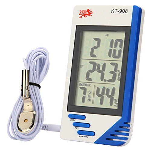 Studio : SODIAL(R) Publisher : SODIAL(R) Binding : Misc. Product Description * SODIAL is a registered trademark. ONLY Authorized seller of SODIAL can sell under SODIAL listings.Our products will enhance your experience to unparalleled inspiration. SODIAL(R) New In/Out LCD Digital Temperature Humidity Meter Thermometer Hygrometer Degrees Celsius / Fahrenheit Material:plastic Color:bluewhite Indoor: 14.0 to 122.0Fahrenheit / -10.0 to 50.0Degrees Celsius Outdoor: -58.0 to 158.0Fahrenheit/ -50.0 to 70.0Degrees Celsius Resolution: 0.1 Degrees Celsius / 0.1 Fahrenheit Accuracy: /- 2Fahrenheit or /- 1.0Degrees Celsius Humidity Range: 20% to 99% /- 5% relative humidity Accuracy: /-5% (for the 40 - 80% range) Memory: min/max for indoor and outdoor temperature Dimensions: 110 x 58 x 18mm Clear display for easy reading Weight: approx 108g Battery: 1 x 1.5 Volt AAA (NOT included) Package Included: 1 x Digital Indoor Outdoor In/Out Thermometer Note: Light shooting and different displays may cause the color of the item in the picture a little different from the real thing. The measurement allowed error is /- 1-3cm. 0