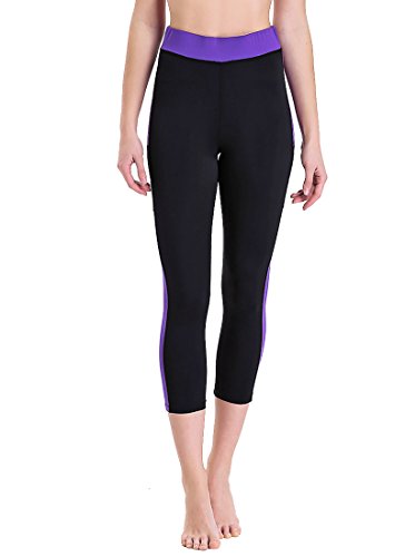Clothin (크로스) 레이디스 요가 팬츠 런닝 스트레치 팬츠 7 분장경량 유연 원단-XL-퍼플