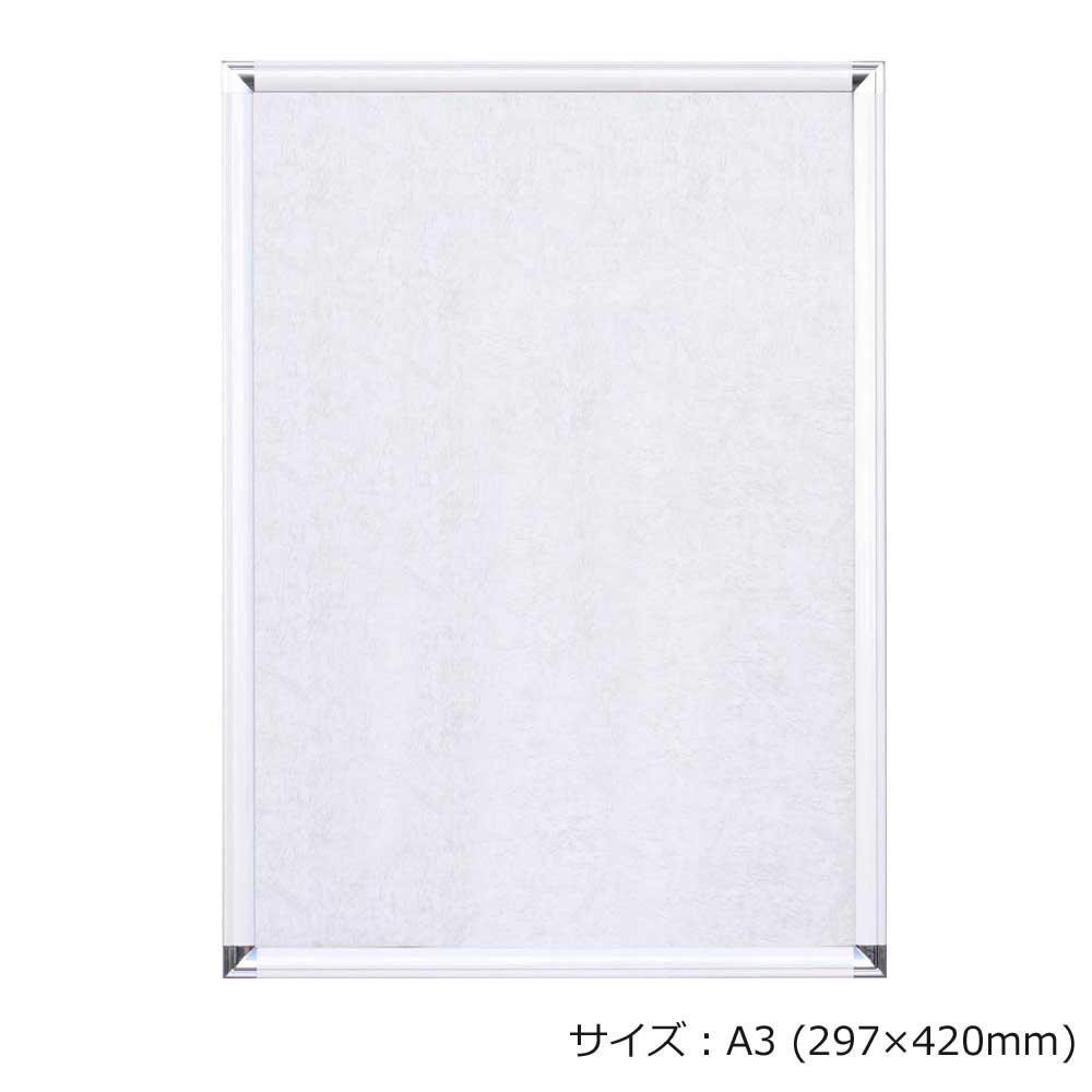 壁に直接取り付けたまま作品の入れ替えができる、開けやすく閉めやすい前面開放方式のアルミフレームです。