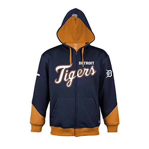 MLB Detroit Tigers Men's Hooded Full Zip Fleece Jacket, XX-Large, Navy