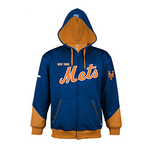 MLB New York Mets Men's Hooded Full Zip Fleece Jacket, Large, Royal