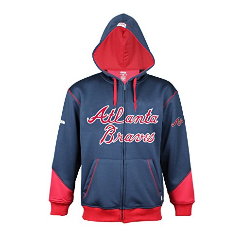 MLB Atlanta Braves Men's Hooded Full Zip Fleece Jacket, Large, Navy