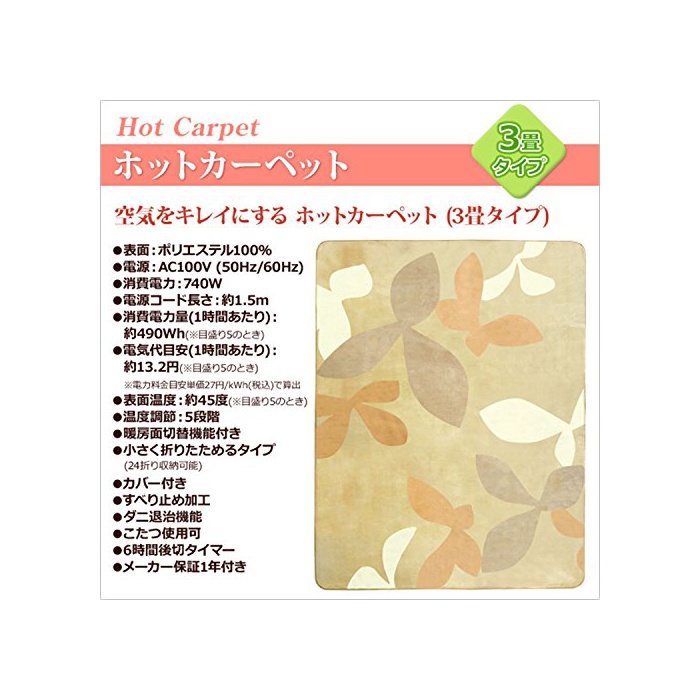 원본상품명: 山善(YAMAZEN) 空をキレイにする ホットカペット(3タイプ) フランネルカバ付 小さく折りたためるタイプ YZF-300LE