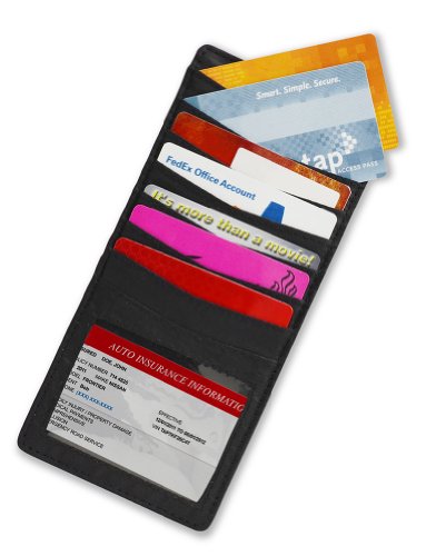 -. Feature : Keeps loyalty cards, insurance cards, and other important documents organized and accessible. / 22 double sided pockets with straps to attached to a car's sun visor. / A vinyl cover with a clear pocket for registration and insurance documents. / Also great for storing in glove compartment, center consoles, or used to organize purses and bried cases.