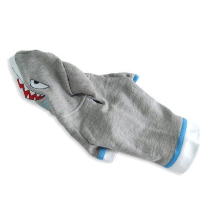 -. Binding : Misc. -. Color : grey -. Feature : Leash hole for easy lead attachment / Two snaps at the neck keeps the hood on and the fin up-right. / Made of 100% cotton / A must have for all the wanna be little tough dogs / Sizing is by girth. See chart for proper fit -. Label : Dogo Pet Fashions -. Manufacturer : Dogo Pet Fashions -. PackageQuantity : 1 -. ProductGroup : Pet Products -. ProductTypeName : PET_SUPPLIES -. Publisher : Dogo Pet Fashions -. Studio : Dogo Pet Fashions -. Title : Shark Dog Pet Deluxe Costume/Hoodie by Dogo Pet Fashions