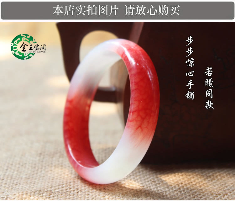女款玉手镯 步步惊心若曦同款手镯 岫玉鸡血石红色玉镯子正品