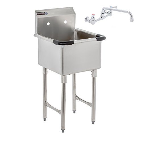 Apex DuraSteel 1 Compartment Stainless Steel Commercial Food Preparation Sink with 8" No Lead Faucet, 18 x 18