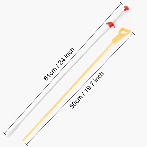 - The stainless steel cleaner is about 24 inch length, 0.9 inch width, PP + stainless steel materials with good toughness, there is a claw can grip hairs and other blockages tightly.