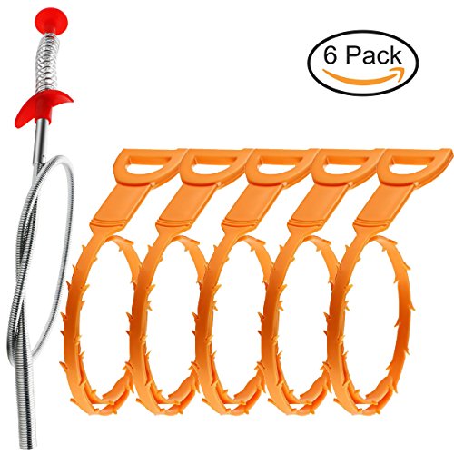 - Package including 6 Pack Drain Snake Hair Drain Clog, 1stainless steel cleaner and 5 plastic drain snake tools for Sink, Tube Drain Cleaning.