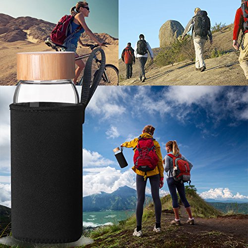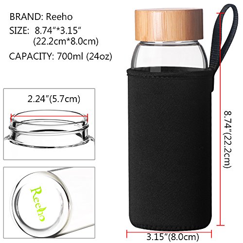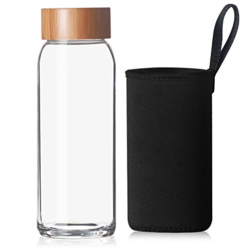 24 Ounce glass water bottle is manufactured from BPA-Free and eco-friendly, Borosilicate glass for easy cleaning and safe reuse. The cap is made of bamboo.