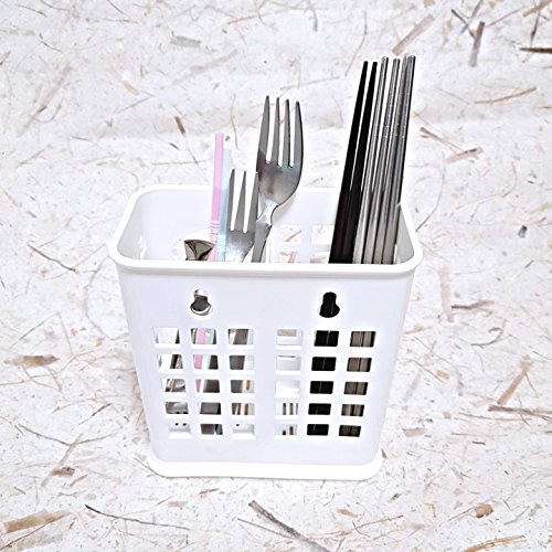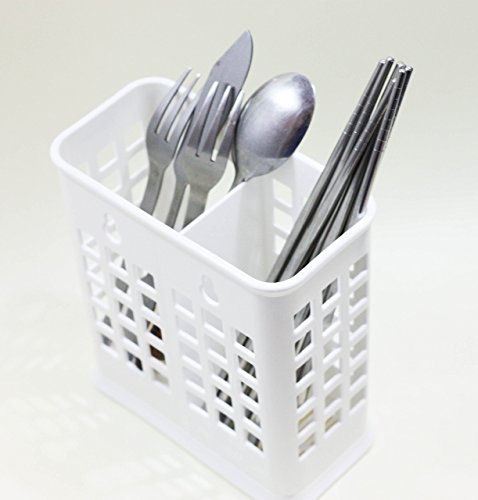 Chopsticks Straws and Small Utensils Holder Basket for Dishwashers / 2 Divided Cells / White