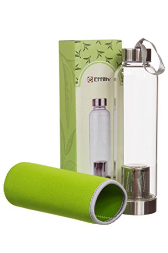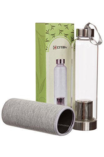 Bring Some Calm to Your Crazy Life Unfortunately, you probably can't sit at home and sip tea all day, nestled in a recliner. But you can take that feeling with you on the go with this borosilicate glass tea mug. This glass tea tumbler bottle can handle liquid so hot (or so cold), you'll need our nylon sleeve to protect your hands. Cold water can dance with fruit or herbs stuffed into the removable infusion cup, too, so this glass water bottle is about to be your new favorite thing ever. And you don't have to worry about any scary chemicals leeching into your water or tea, because glass is eco-friendly and it's proven to be healthy. We stand by a 100% satisfaction guarantee, so try out the hot tea tumbler today, and see how much more relaxing your day can feel. IMPORTANT: Make sure put Sleeve on the bottle, before adding hot water and to make sure the lid is tight on the bottom. CHILDREN AND HOT FLUIDS SHOULD BE KEPT APART.