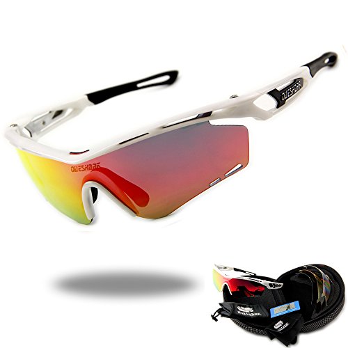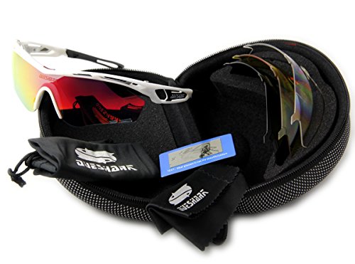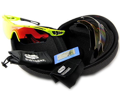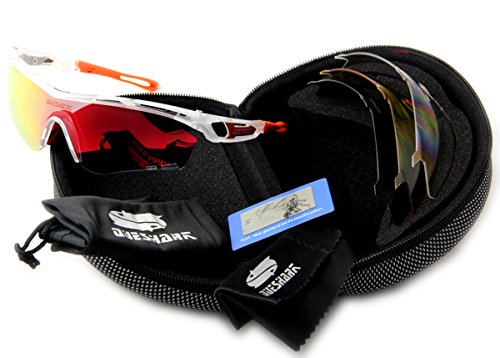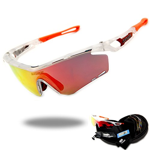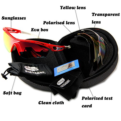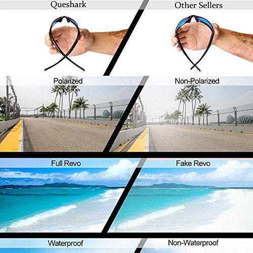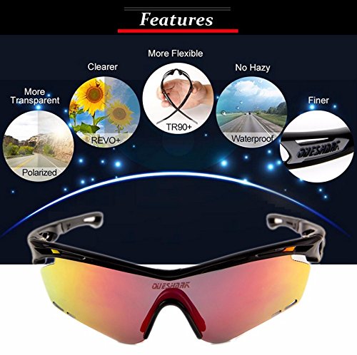 Product Description Features: 1.TAC POLARIZED LENS- 100% UV400 protection coating, blocks 100% harmful UVA UVB Rays. Restore true color, eliminate reflected light and scattered light and protect eyes perfectly. 2.SUPERLIGHT, STYLISH, DURABLE- Lightweight design is ideal for usage by motorcycle and cycling bicycle, driving, running, fishing, racing, skiing, climbing, trekking or other outdoor activities enthusiasts. Fashion and stylish design, with rich color combinations of frames and lens. 3.LIFETIME BREAKAGE WARRANTY ON FRAME LENS - In case any broken problem happens, contact the seller of Queshark without hesitation to solve the problem until satisfaction. Package: 1*Sunglasses 1*Transparent lens 1*Polarized lens 1*Yellow lens 1*Full revoed red lens 1*Clean cloth 1*Soft bag 1*Eva box