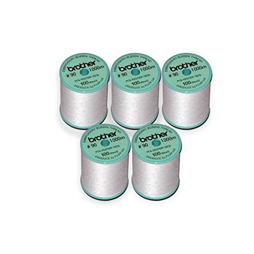Brother 5 Pack EBTPE 90-Weight Embroidery Thread, White