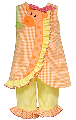 -. Feature : 55% Cotton, 45% Polyester and machine washable / Lined top & Giraffe appliqued / Three button back closure / Come with yellow elastic waist gingham pull on caP.R.Is with orange gingham ruffle hem / Your little girl will look so cute in her orange and white gingham check seersucker appliqued giraffe caP.R.I set, she'll want to wear it every day!