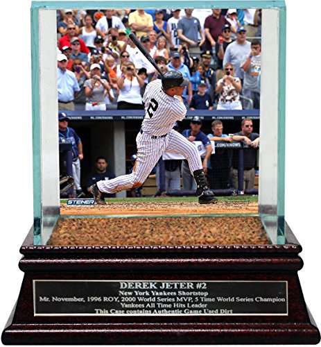 Derek Jeter Moments: DJ3K Background Glass Single Baseball Case w/ Yankee Stadium Authentic Dirt & Nameplate