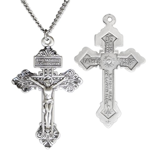 -. Binding : Jewelry -. Brand : Heartland Store -. Department : mens -. Feature : Large Men's Pardon Crucifix with Light Etching. Stunning. High Quality. Features Text ""Jesus Nazarenus Rex Jud / Eorum" on Front and ""Behold which has this heart. This heart so loved them. Father forgive them" on back. / SIZING: 2 1/8 inch x 1 3/8 inch / QUALITY: This top quality pendant is made from Genuine .925 Sterling Silver / CHAIN INCLUDED: Tarnish Resistant 24 Inch Endless Rhodium Plated Heavy Curb Solid Brass Chain / EXPERIENCE: Finest Quality Jewelry. American Craftsmen. Made in USA. -. Label : Heartland Store -. Manufacturer : Heartland Store -. ProductGroup : Jewelry -. ProductTypeName : FASHIONNECKLACEBRACELETANKLET -. Publisher : Heartland Store -. Studio : Heartland Store -. Title : Heartland Men's Large Sterling Silver Pardon Crucifix