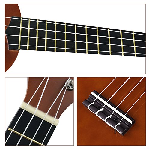 Ukulele is the one of the most easy to lean music instruments. This ukulele is set with a gig bag, tuner, picks and extra strings, which includes all accessories for beginners to start their music.