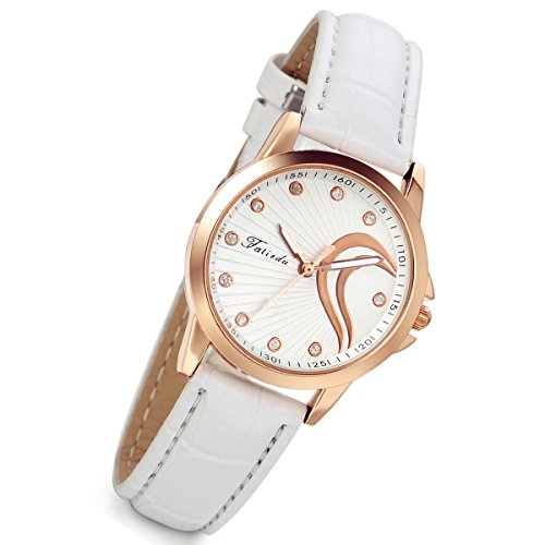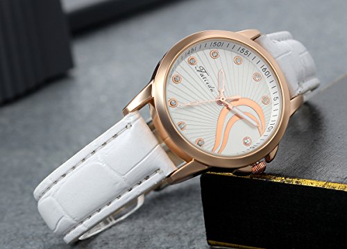 -. Title : Lancardo Fashion Rose Gold Tone Bling Rhinestone Leather Girls Ladies Watch(White,2PCS)