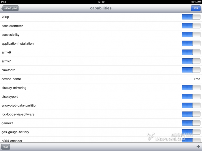 1、通过ifile,找到system/library/coreservices/springboard.app  ,找到 K48AP.plist 文