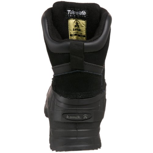 Amazon.com For durability, protection, and rugged style, zip into the Champlain winter boot from Kamik. With its waterproof, seam-sealed suede and nylon upper; Thinsulate lining; convenient front zipper; padded collar and gusset tongue; and a host of other performance features, you'll be ready to tackle frigid terrain?even down to -25° F?with confidence. 0