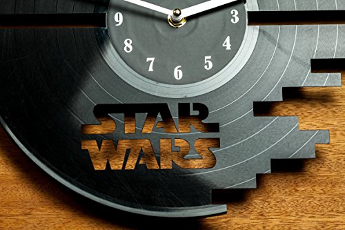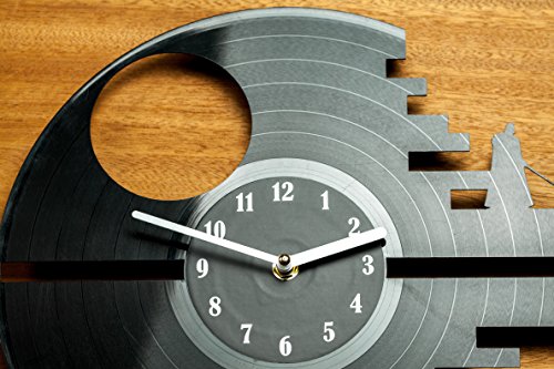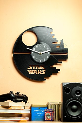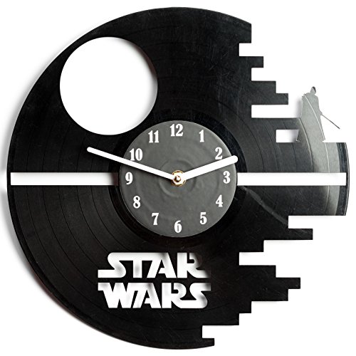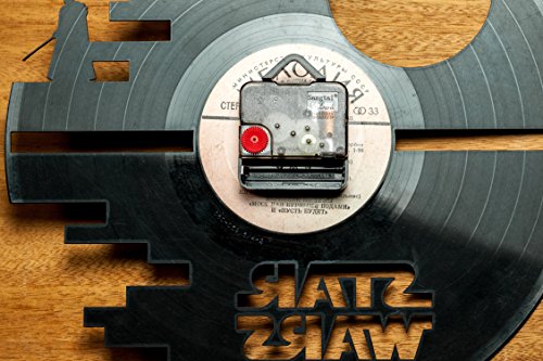 -. Binding : Kitchen -. Color : Black -. EAN : 0641022852965 -. Feature : It's creative - the clock is made of a record, and vinyl records themselves are very beautiful / It has the silent mechanism - no "tick-tock" will get on your nerves / It's an unusual gift; musicians and music lovers will be especially surprised to get it / It's an amazing interior decoration. / It's a little contribution to the environmental protection - the use of recycled products -. IsAutographed : 0 -. Label : secondlifeforvinyl -. Manufacturer : secondlifeforvinyl -. PackageQuantity : 1 -. ProductGroup : Home -. ProductTypeName : HOME -. Publisher : secondlifeforvinyl -. Size : 12" -. Studio : secondlifeforvinyl -. Title : Star Wars Vinyl Wall Clock Cutout - Kitchen Clocks - Death Star - wall art -. UPC : 641022852965