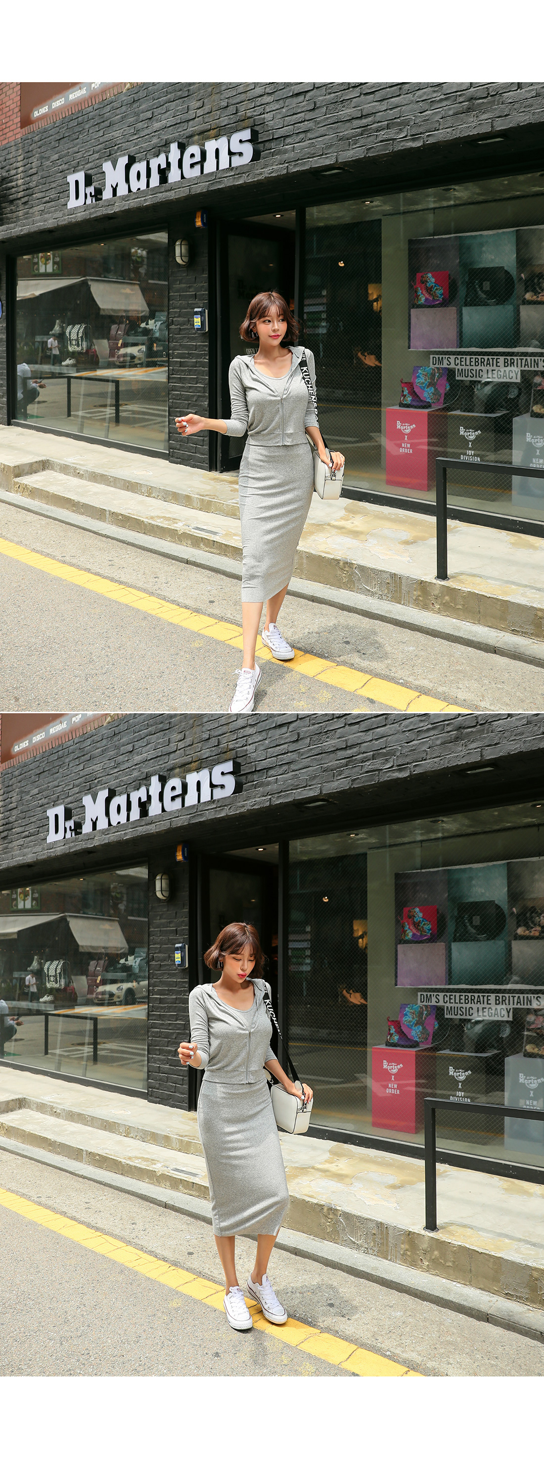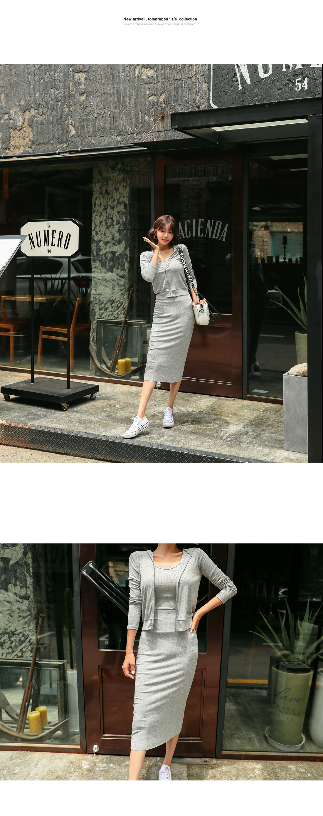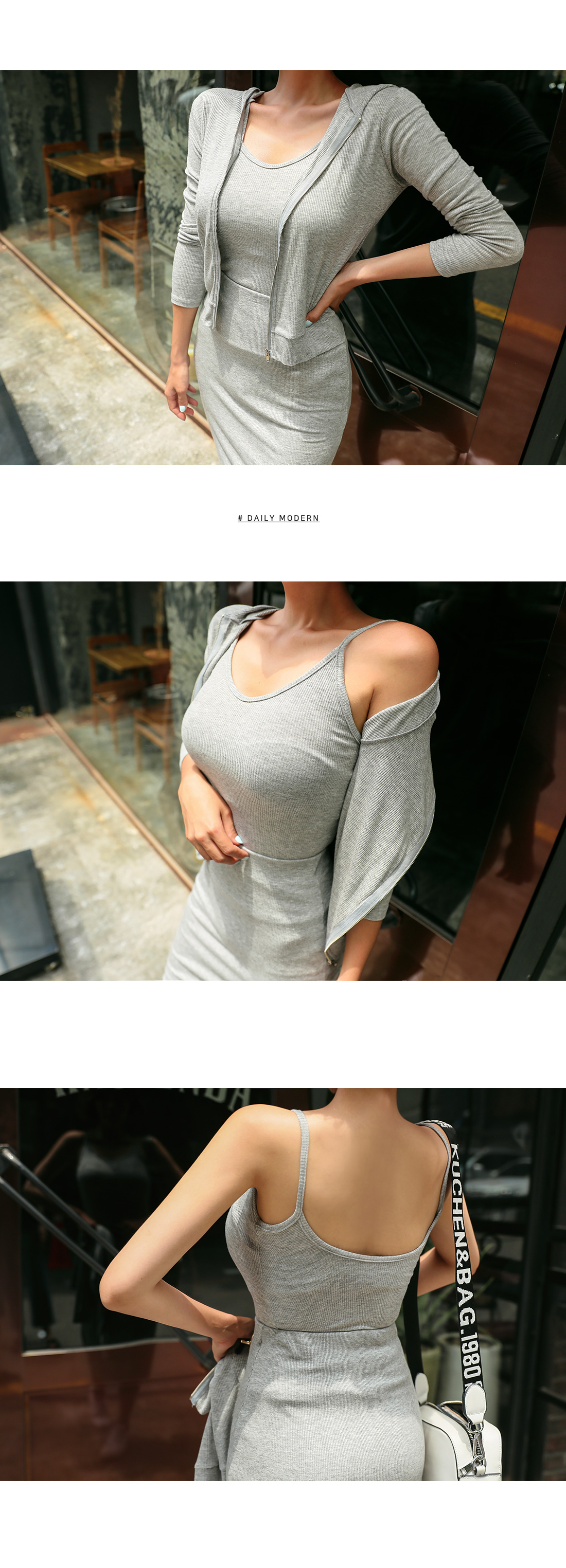 MD COMMENT스타일리쉬함과 편안함을 동시에 챙길 수 있는집업SET 아이템을 소개할게요.슬림한 핏의 후드집업, 나시, 스커트가 함께 세트로구성되어있는 아이템인데요.은-근 볼륨감 있는 실루엣을 연출해주며내추럴한 무드로 데일리하게 즐기기 좋아요.끈나시는 백라인 깊은 U넥으로 섹시한 무드를 더해주었구요.스커트는 허리밴딩과 롱한 기장감으로부담없이 즐겨입으실 수 있어요.군더더기 없이 깔끔한 디자인으로 유행 상관없이오랫동안 착용하기 좋구요.SET로 착용하셔도 완성도 있는 연출이 가능하며각각 단독으로 다양한 아이템과 매치하여멋스러운 룩을 완성할 수 있답니다.컬러는 그레이,블랙 2컬러 준비했으며모델은 그레이 컬러 착용했어요.COLOR/SIZE그레이,블랙FREEMODEL FITTING그레이/FREE
