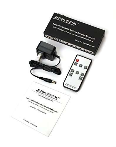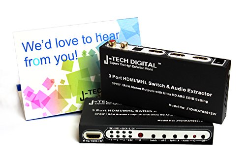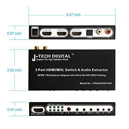 - Title : J-Tech Digital ® HDMI 1.4 Switch Switcher Box Selector 3 In 1 Out HDMI Audio Extractor Splitter with Optical SPDIF & RCA L/R Audio Out & Remote Control Supports ARC, MHL, Ultra HD, Full 3D, 4kx2k, 1080P (Support Apple TV 4Gen)