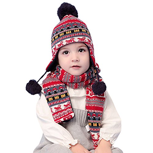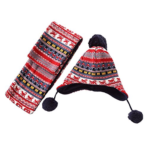 (Tortor 1Bacha)/Accessories/Cold Weather Accessories/DIRECT FROM USA/Tortor 1Bacha Infant Baby Kid Girl Boy Winter Aztec Knit Pom Pom Ear Flap Hat Scarf Set