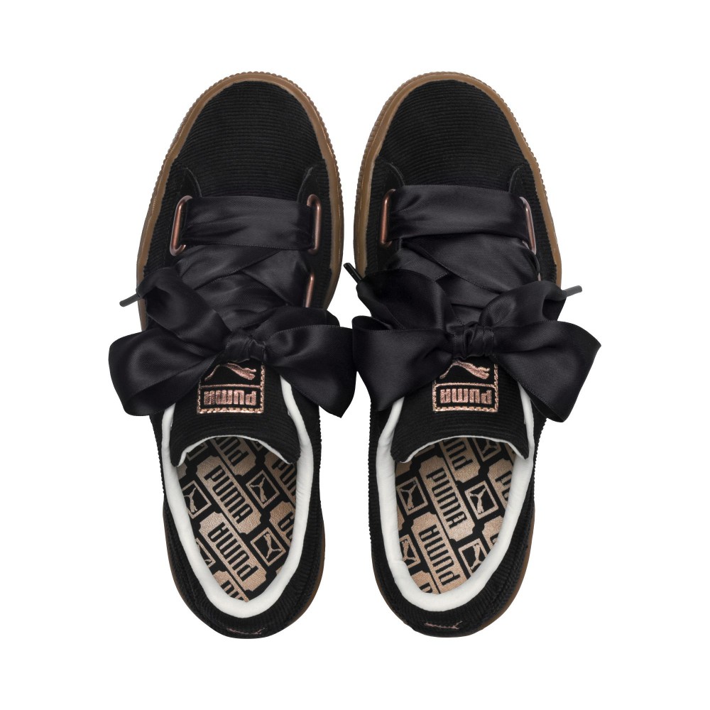 오른 이 신발에 새틴 소재와 보우 디테일을 더해 업데이트 한 것.코듀로이 어퍼와 검 솔로 러?한 텍스쳐에 여성스러운 터치를 더한 것이 특징.