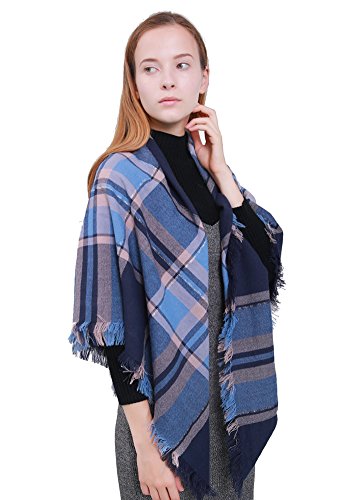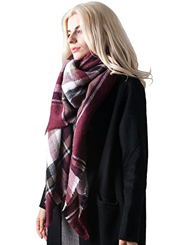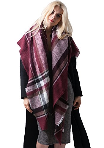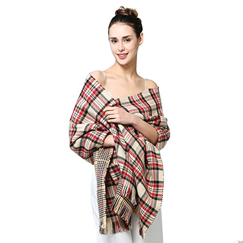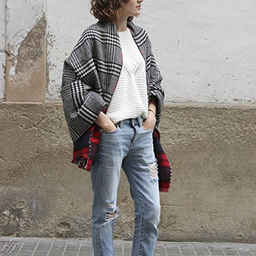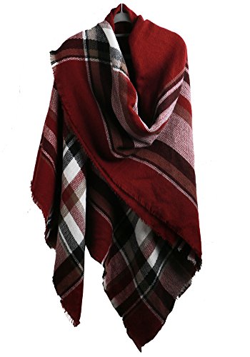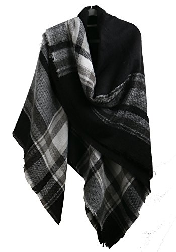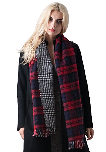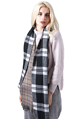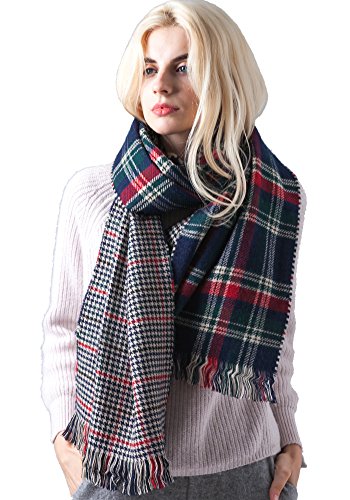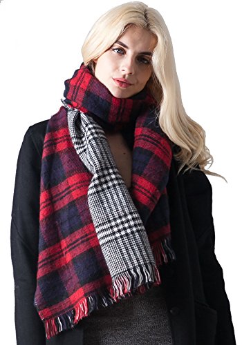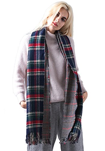 | MissShorthair Fashion Unisex Winter Reversible Plaid Print Blanket Scarf Shawl |